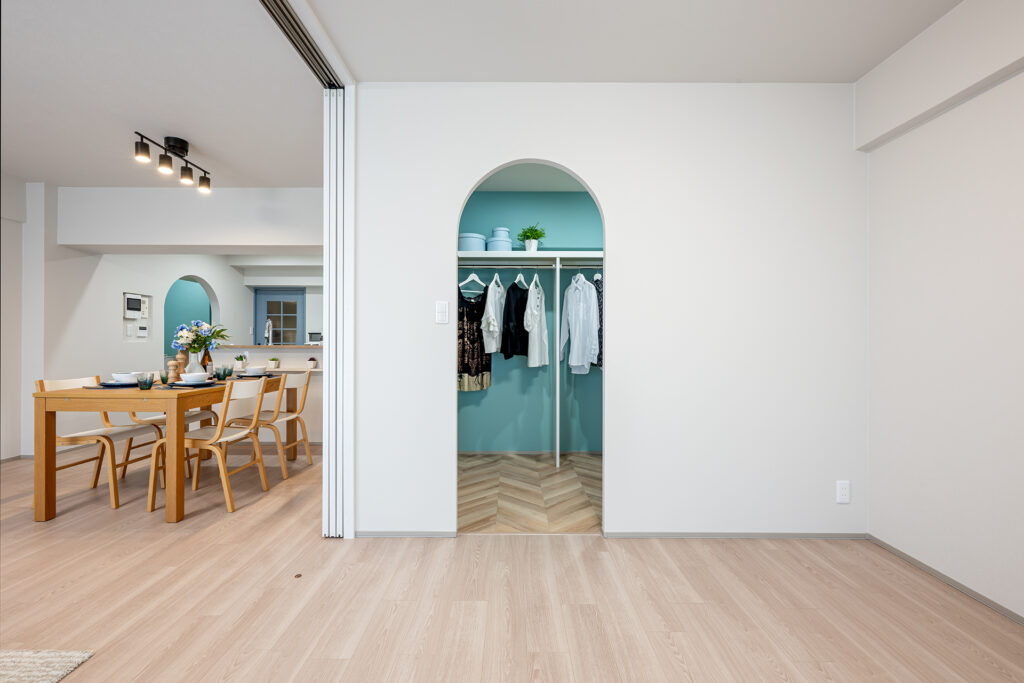 両親は「扉がないなんて」と世代間ギャップを感じていたようですが、ウォークインクローゼットやパントリーの扉をなくし、出入り口をアーチ状にしたことで、開放的で使いやすい空間になりました。