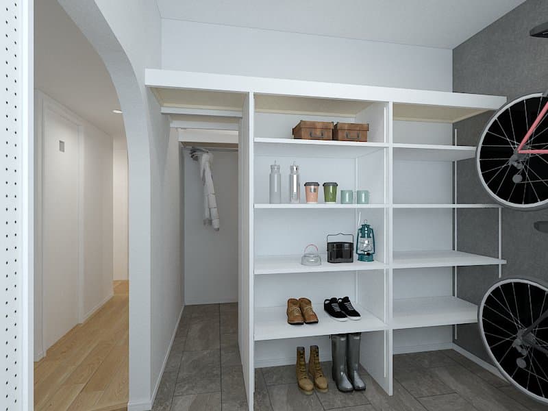 寝室とWICの導線を見直し、日々の身支度がスムーズになる大きなWICを計画しました。 - 趣味が日常に溶け込む土間収納