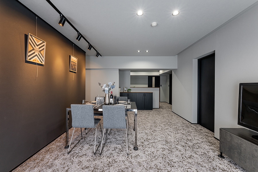 ブラックを基調としたホテルライクな空間は、上質さと落ち着きが共存する、