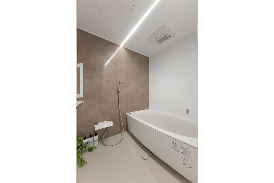 光と影がやさしく調和する、上質で穏やかなバスルーム。